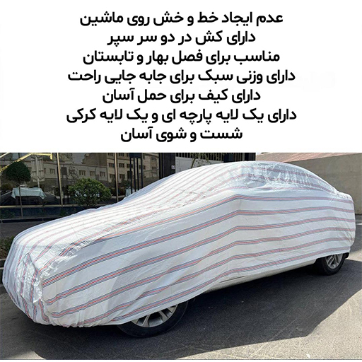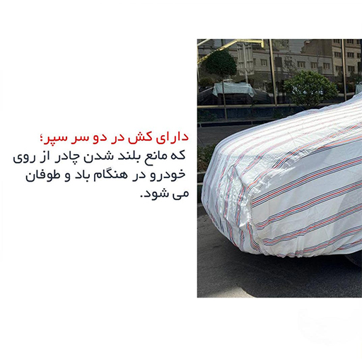 عدم ایجاد خط و خش احتمالی به علت وجود لایه کرکی - جلوگیری از بلند شدن چادر هنگام باد و طوفان بهکمک کشهای دو سر سپر - جلوگیری از نشستن گرد و غبار روی ماشین - جلوگیری از تابش مستقیم نور خورشید به بدنه ماشین
